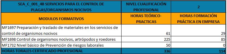 El Certificado Profesional SEA_C_001_4B Servicios para el control de plagas/organismos nocivos es una titulación oficial reconocida en todo el territorio nacional y en la Unión Europea.